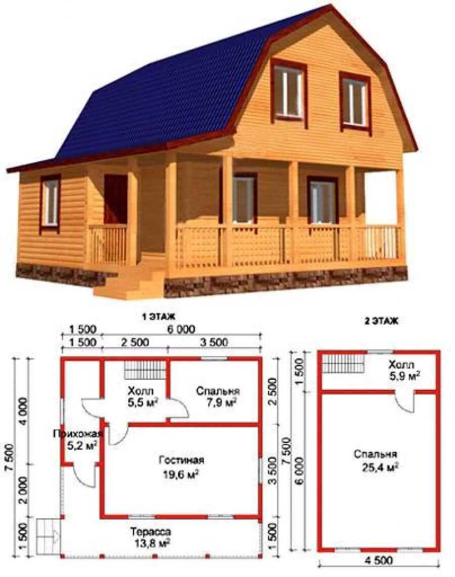 Размер: 6х7,5 м., брус 100х150мм, цена с учетом материала и работы (крыша, стены, двери)