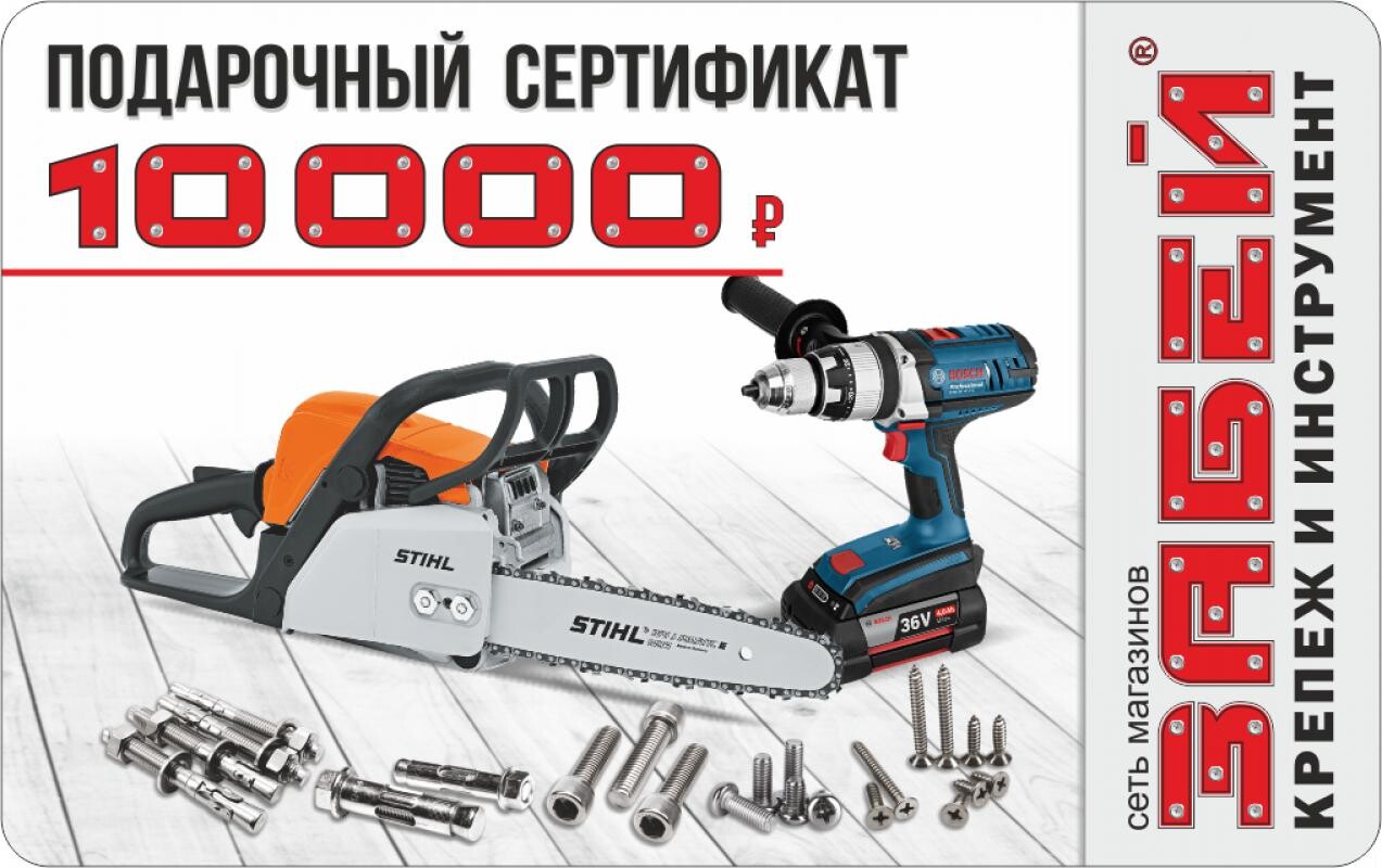 Являясь обладателем подарочного сертификата «Забей» Ваши друзья и близкие будут благодарны за предоставленный им выбор подарка! Будь то крепёж или инструмент, расходные материалы или садовый инвентарь, обладатель подарочного сертификата всегда сможет выбрать именно тот товар, который ему действительно нужен. Подарив подарочный сертификат «Забей», Вы не промахнётесь с подарком! Ведь свобода выбора и есть самый лучший подарок.
