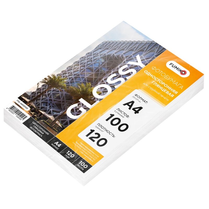 Глянцевая односторонняя фотобумага для струйного принтера. Фотобумага формата А4 плотностью 120 г/м2. Такая фотобумага отлично подойдет для печати фотографий, документации и деловой корреспонденции. Одна пачка содержит 100 листов. С обратной стороны фотобумага без надписей и разметок. Бумагу можно купить оптом.