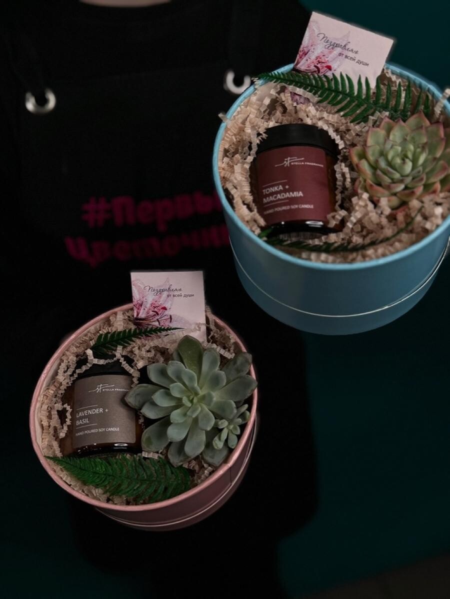 Суккуленты , натуральные соевые свечи нежнейшего аромата и нотки стабилизированной зелени