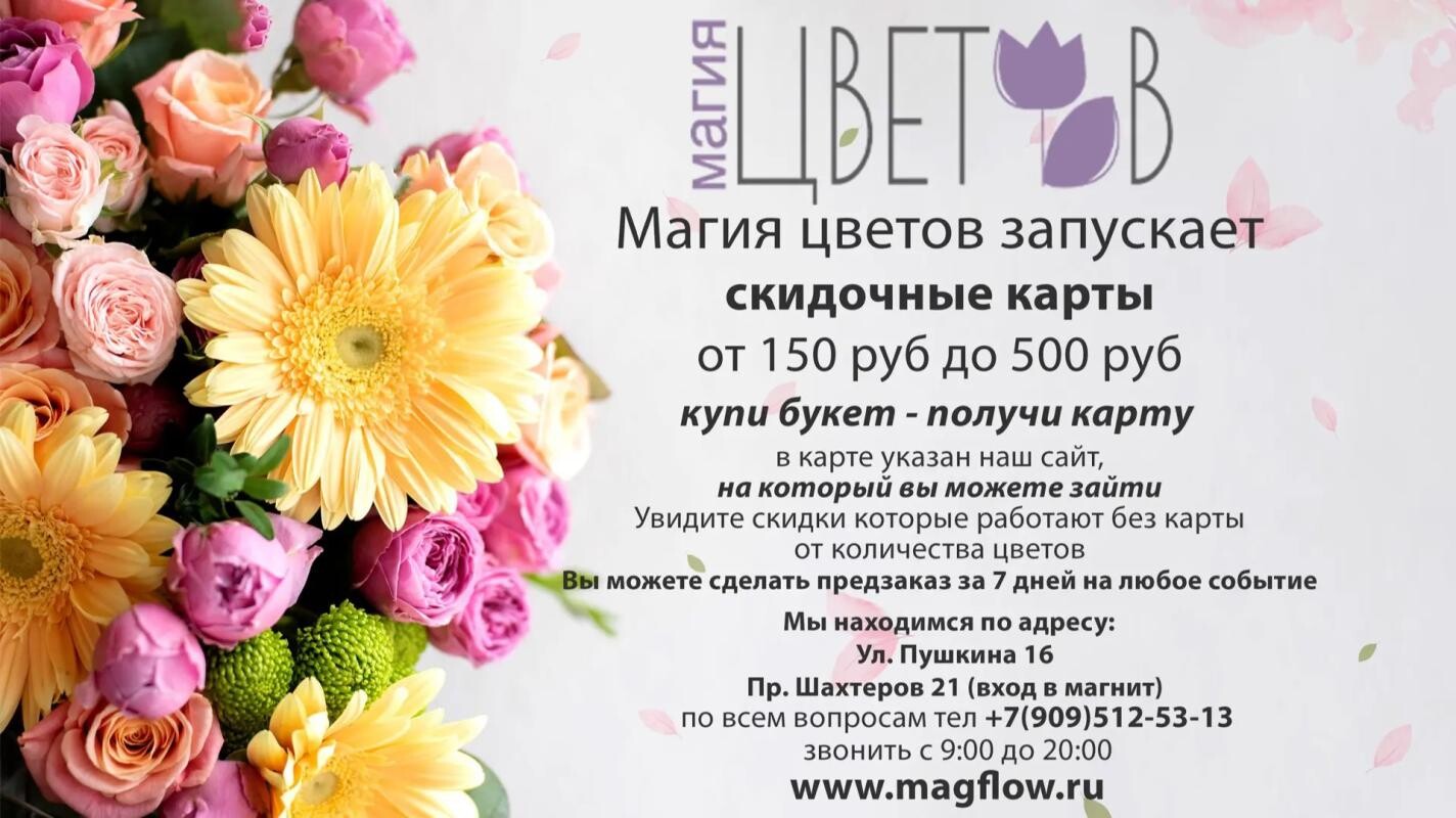 «Магия цветов» запускает скидочные карты от 150 руб до 500 руб.
