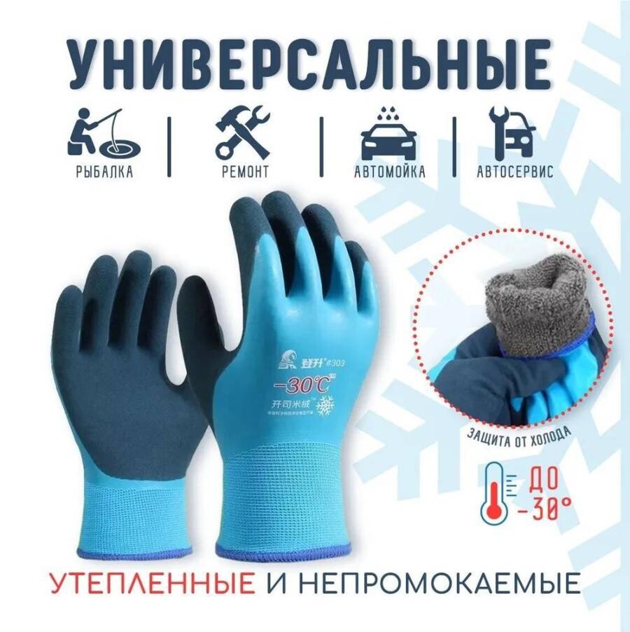 Водонепроницаемые утеплённые нескользящие перчатки. До -30 Перчатки для зимней рыбалки или активного отдыха c вспененным латексным покрытием . Полный облив всей кистевой части и дополнительно второй облив ладонной части. - Комфортное использование при - 30*С - Высококачественный вспененный латекс морозостойкий водонепроницаемый, износостойкий, устойчивый.