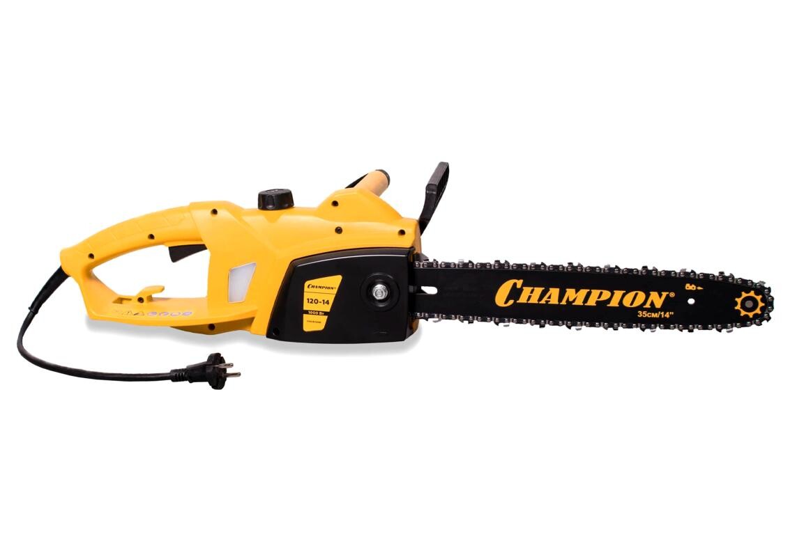 Электропила Champion 120-14" - легкая модель для выполнения бытовых задач. Работает от электрической сети с обычным напряжением (220 В). Отличается удобством и простотой в обращении. Оснащена тормозом цепи для исключения травмирования оператора в случае отскока. Предусмотрен крючок для закрепления сетевого кабеля.