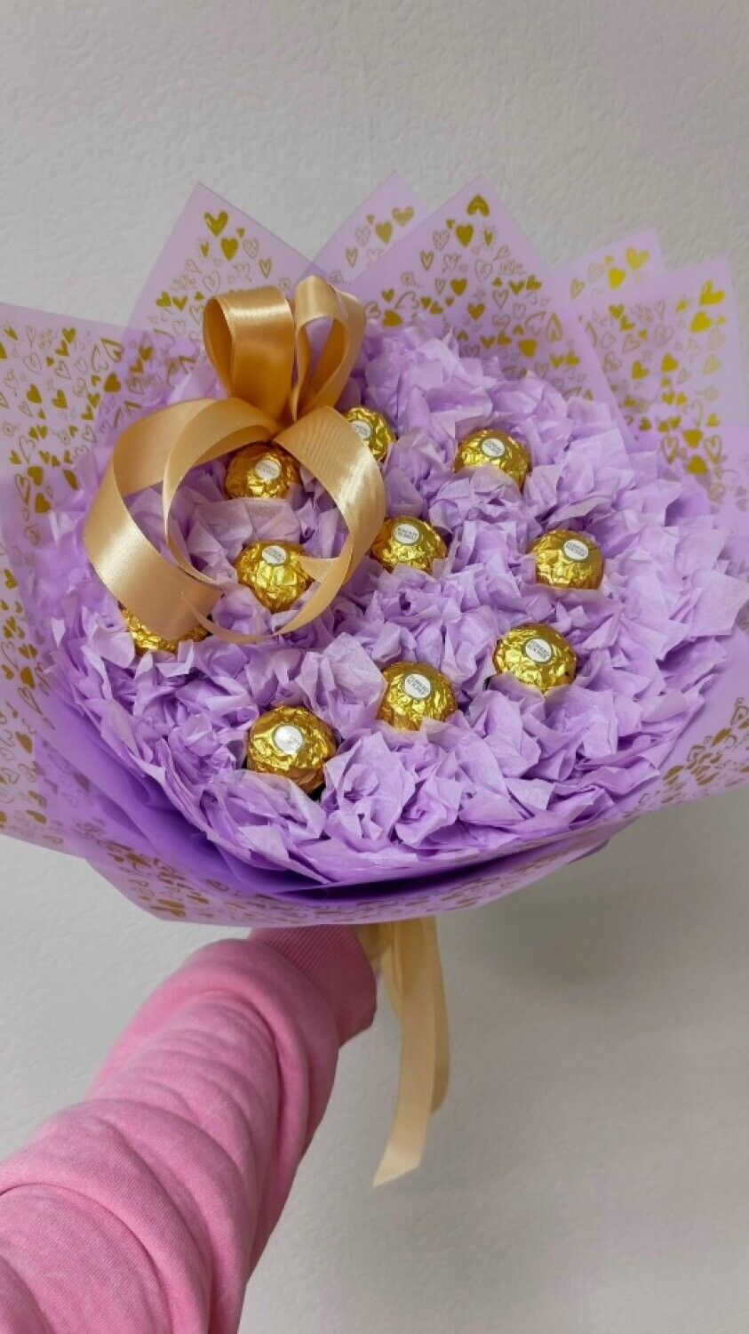 Букет из конфет babyfox, Bounty, MilkyWay, Ferrero Rocher, Raffaello